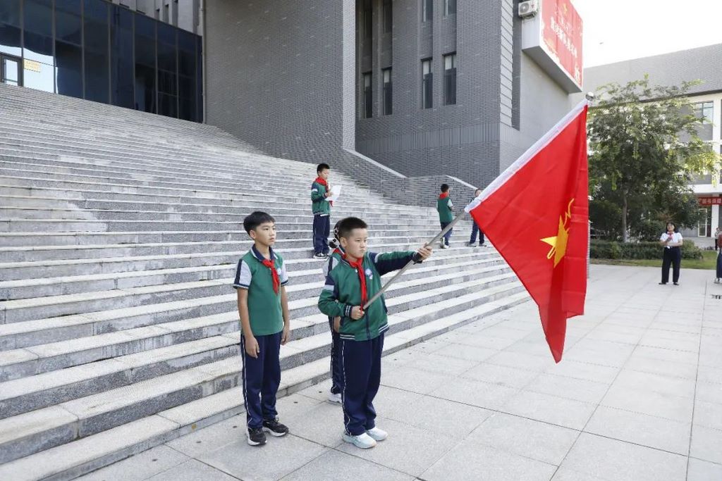 广场上,队旗飘扬,歌声嘹亮。新队员们个个精神饱满,脸上洋溢着自豪的笑容。他们排着整齐的队伍,等待着人生中这一重要时刻的到来。伴随着激昂的出旗曲,三名旗手迈着整齐的步伐庄严出旗,正式拉开了入队仪式的序幕。
