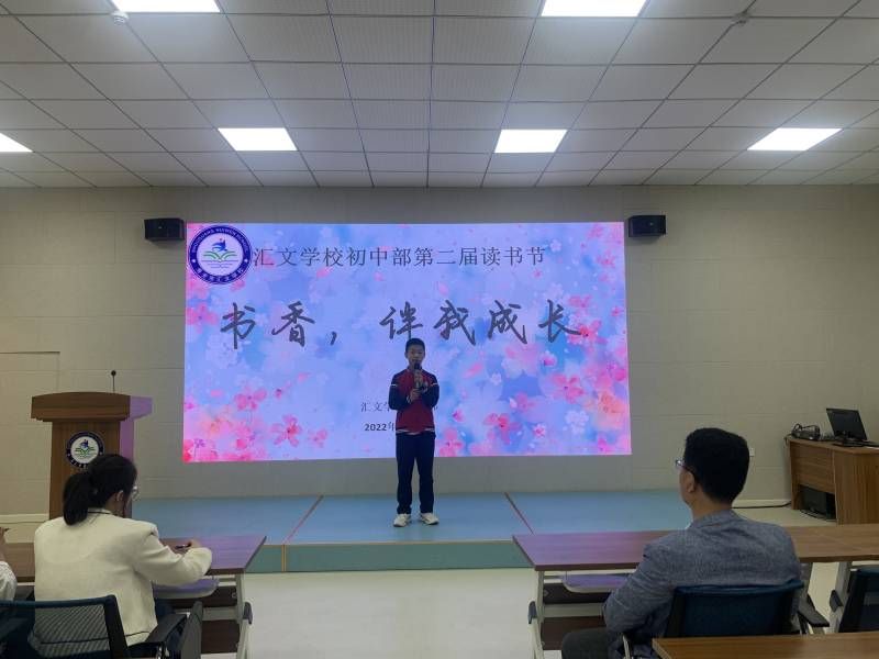 汇文学校初中部校长王斌为本次读书节致词。同学们不仅自己读书,还乐于与大家分享。本次读书节先通过班级分享会评选出“班级读书之星”,然后进行了“校级读书交流”活动,并评出了一二三等奖。同学们认真准备发言内容,与会同学认真聆听,都受益匪浅。