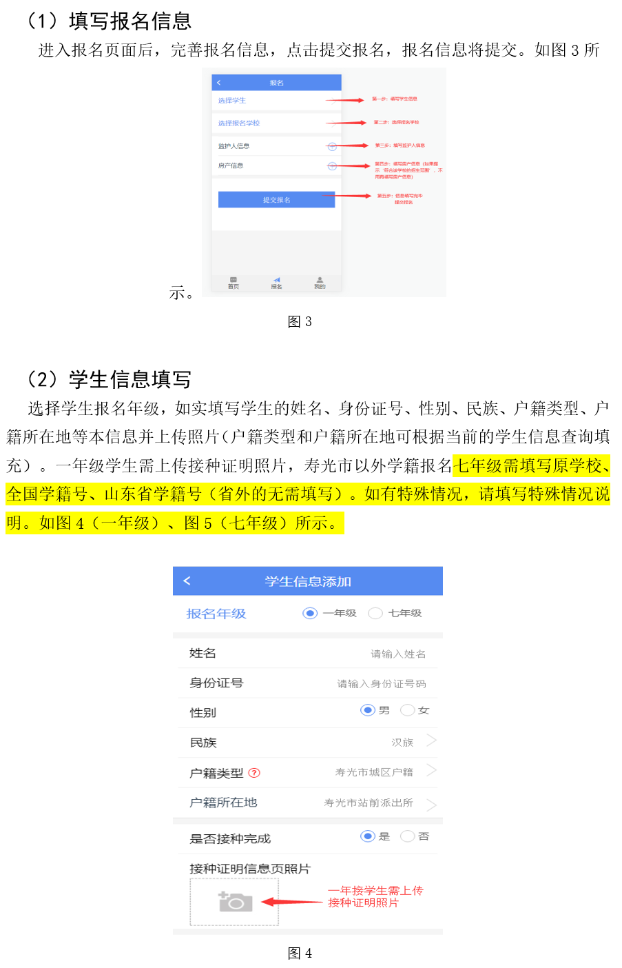 5.小学一年级入学需提供预防接种证;初中一年级以小学学籍(六年级)为准,招生平台无学籍的要出具学籍证明。