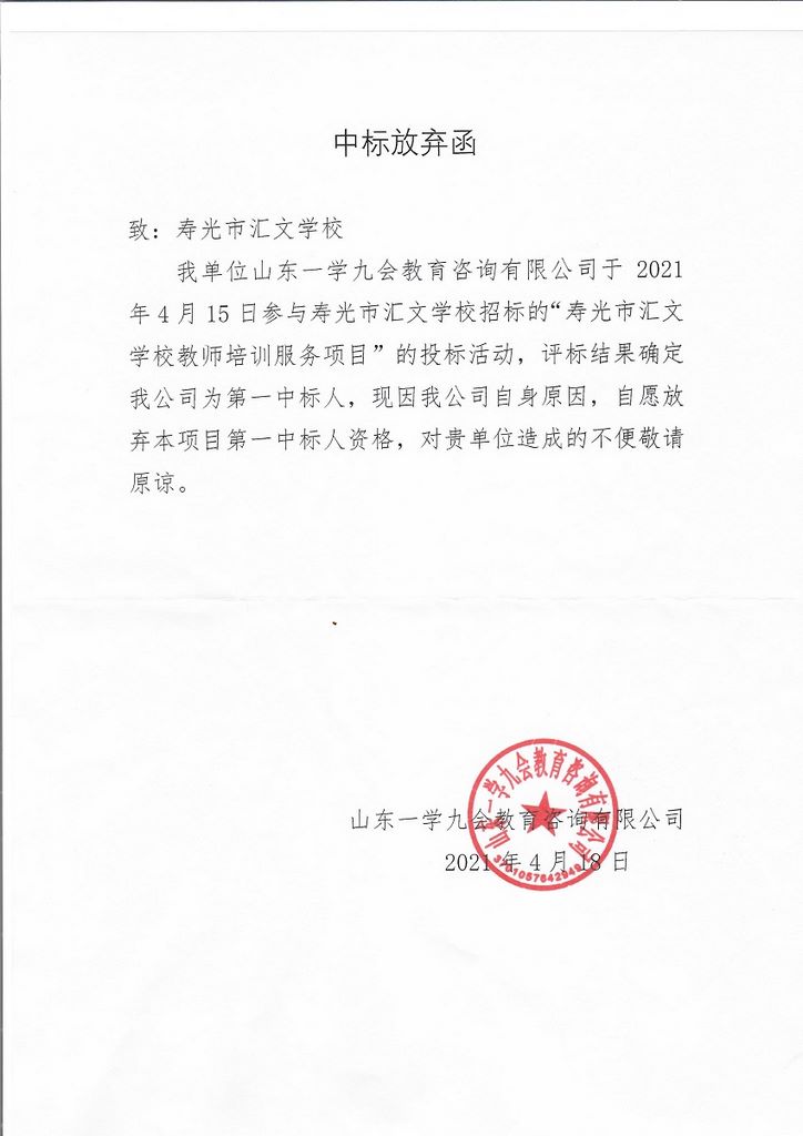 中标放弃函