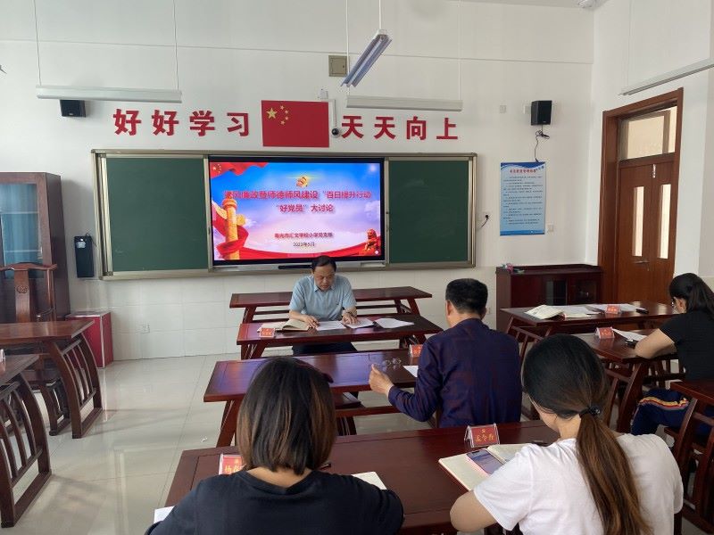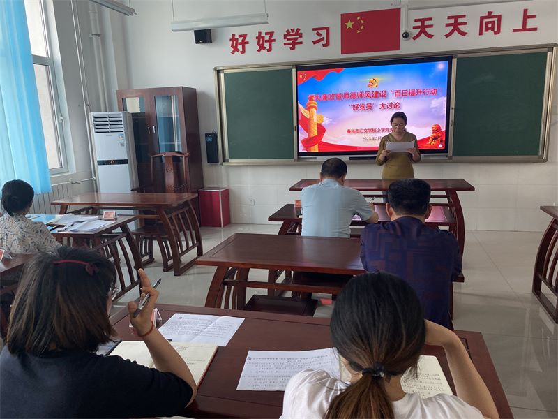 师德师风建设,党员干部是中坚力量,是师德的风向标、师能的排头兵、师风的引领旗。为了保证师德师风建设有实效,5月18日下午,寿光市汇文学校小学党支部举行了“好党员”大讨论活动。