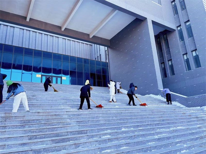 开学在即,瑞雪降临。为确保校园交通畅通无阻,老师们以雪为令、向雪而行,一大早来到学校,开展扫雪除冰行动。