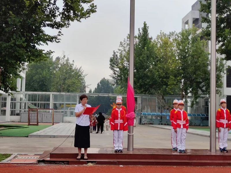 旗展校园,感恩同行。伴着雄壮的《义勇军进行曲》,五星红旗冉冉升起,全体师生肃立注目,家国情怀在心中激荡。仪式后,副校长王晓明发表国旗下讲话,王校长首先总结素质拓展训练活动,肯定同学们在训练中展现的顽强毅力与团结精神,鼓励大家将素质拓展训练中的坚持与自律,转化为日常学习生活的动力,以饱满状态迎接新挑战。针对即将到来的教师节,她代表学校向全体教师致以敬意与感谢,同时希望同学们以认真听讲、养好习惯的实际行动,践行对老师的感恩之情。